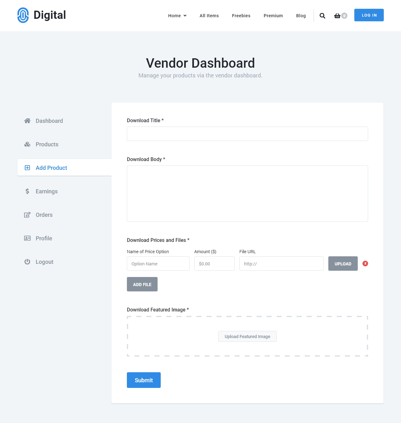 Digital Download Pro allows you to create a multi-vendor online shop with multiple-authors. You can enable the users to sell their products on your website using Front End Submissions Extension for Easy Digital Downloads. Once the extension is installed and activated, it creates a Vendor Dashboard which allows other vendors to create and manage their products, manage the reviews and comments, view the reports of sales and more. The attractive UI with advanced features of the admin area allows helps your focus on your products and reports in a better way.